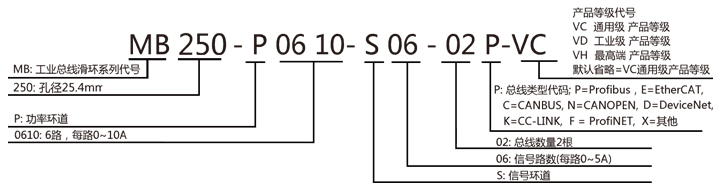 MB250系列工業總線滑環選型表