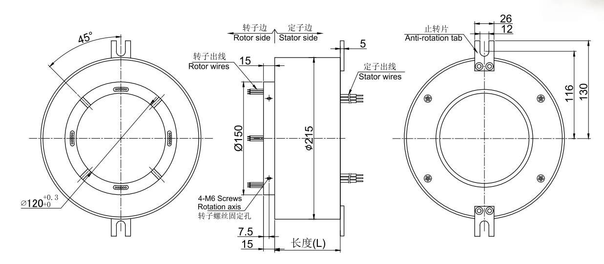 MT120215系列整體式精密導電滑環,主要應用于360度連續旋轉且需要保證電源,信號不能中斷的場合:多用于熱熔膠噴膠機、熱量表遠傳控制系統、自動化控制系統、自動切割機器人、糧油加工設備、造船機械設備、熱處 理設備、摩擦行業機械設備、數碼印花機、數控機床、灌裝機、海運設施等任意需要360°旋轉導電或傳輸各種控制信號的裝置。