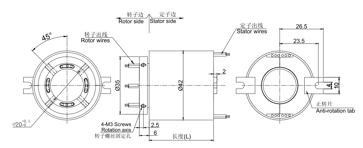 MT2042系列空心軸導電滑環,主要應用于360度連續旋轉且需要保證電源,信號不能中斷的場合:多用于各種自動貼補強機、自動焊接設備、精密模切機、鉚釘插件機、桌面點膠機、分選機、切紙機、裹式包裝機、全自動軟抽袋立封口一體機、半自動臥式軟抽袋雙頭封口機等任意需要360°旋轉導電或傳輸各種控制信號的裝置。