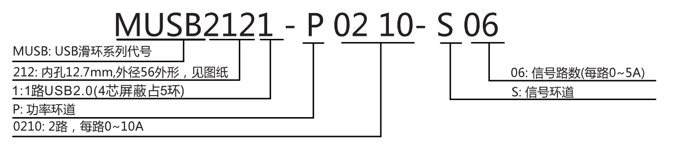 MUSB2121單通道USB滑環系列選型表