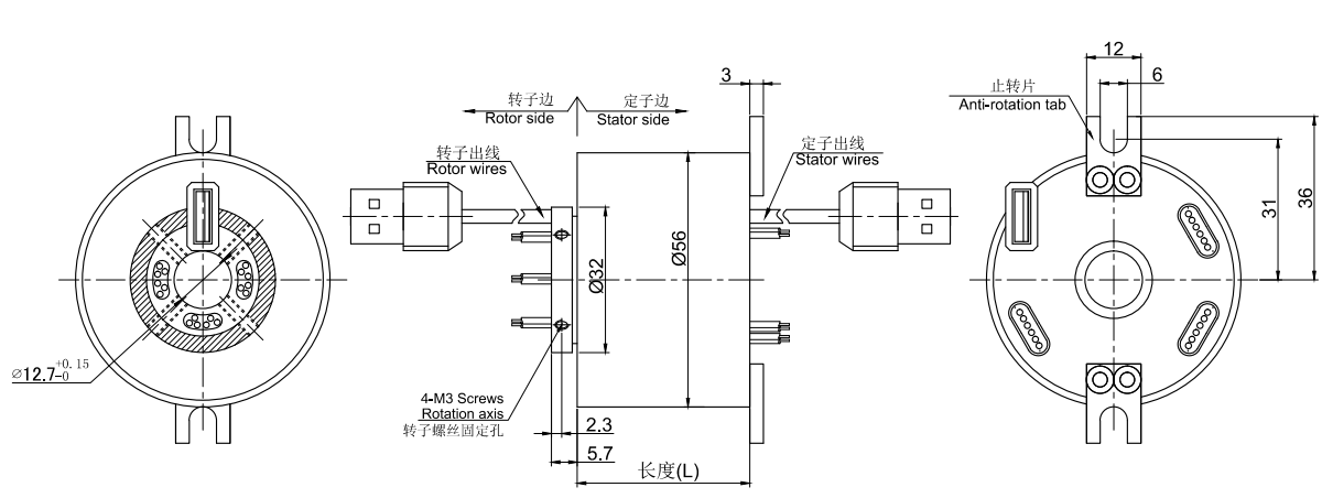 • · MUSB2121系列USB滑環,內孔12.7mm,外徑為標準56mm的緊湊型整體式結構的1通道 USB1.0/USB2.0整體式精密導電滑環,