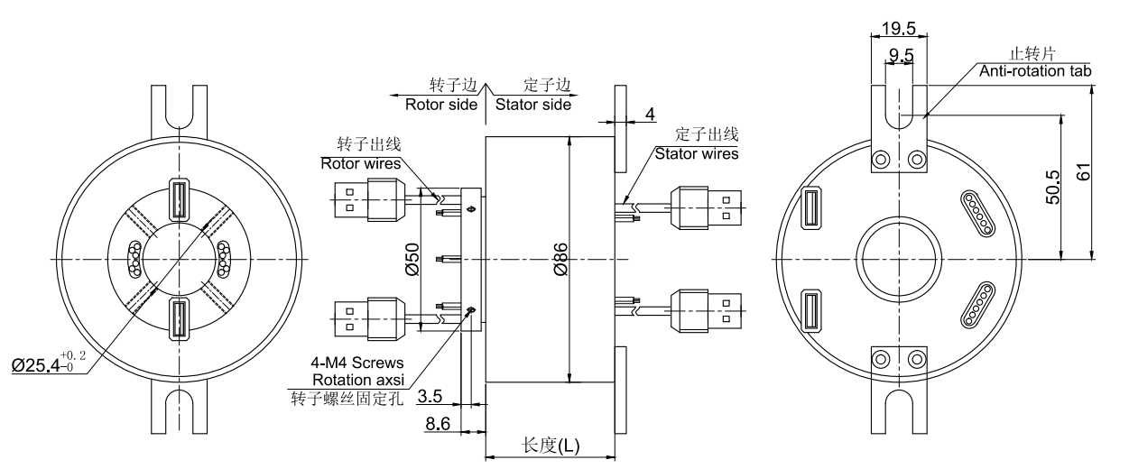 • · MUSB2252系列USB滑環,內孔25.4mm,外徑為標準86mm的緊湊型整體式結構的2通道 USB1.0/USB2.0整體式精密導電滑環,