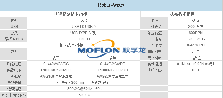 默孚龍導電滑環技術規格參數
