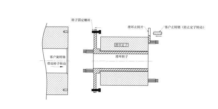因為滑環轉子和定子在安裝的時候很難保證同心,建議用4個緊定螺釘將滑環固定在旋轉軸上,鎖緊螺絲前,請先轉動導電環,讓